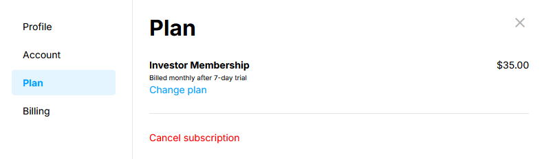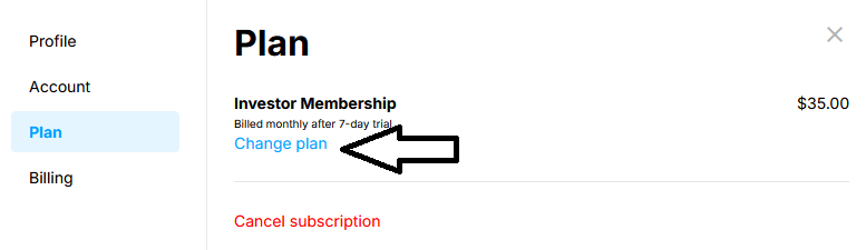 Click on the link labeled Change plan to show the available memberships.