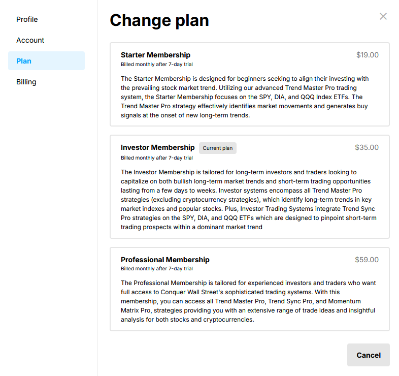 Next, you will be given the option to select a different membership plan.